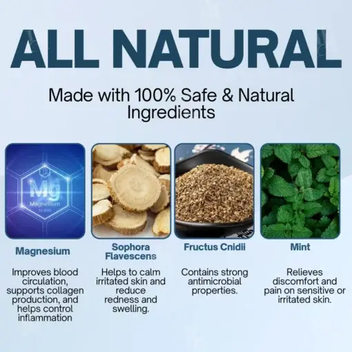 Fructus Cnidii: A traditional botanical with powerful antimicrobial effects, it actively combats harmful bacteria and prevents infection. By keeping wounds clean, it promotes a safer and faster recovery.